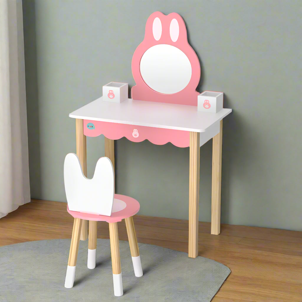 Keezi Kids Dressing Table Wooden Bunny Pink