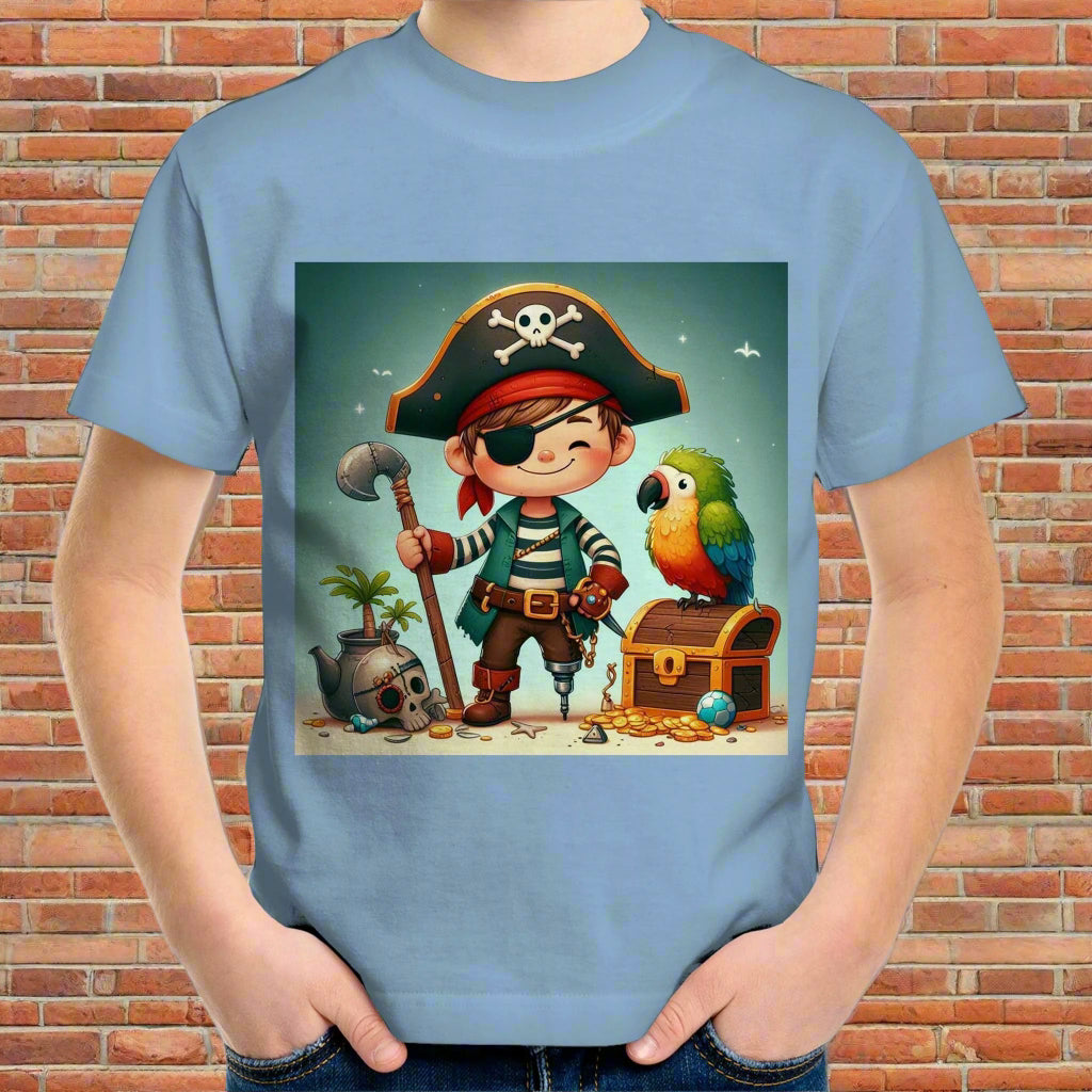Ahoy matey, get your little buccaneer ready for adventure with the Kid Pirate Youth T-Shirt. Perfect for the young swashbuckler in your family, this shirt will have them looking like a true captain of the high seas. (Don't worry, it's also great for backyard play.)