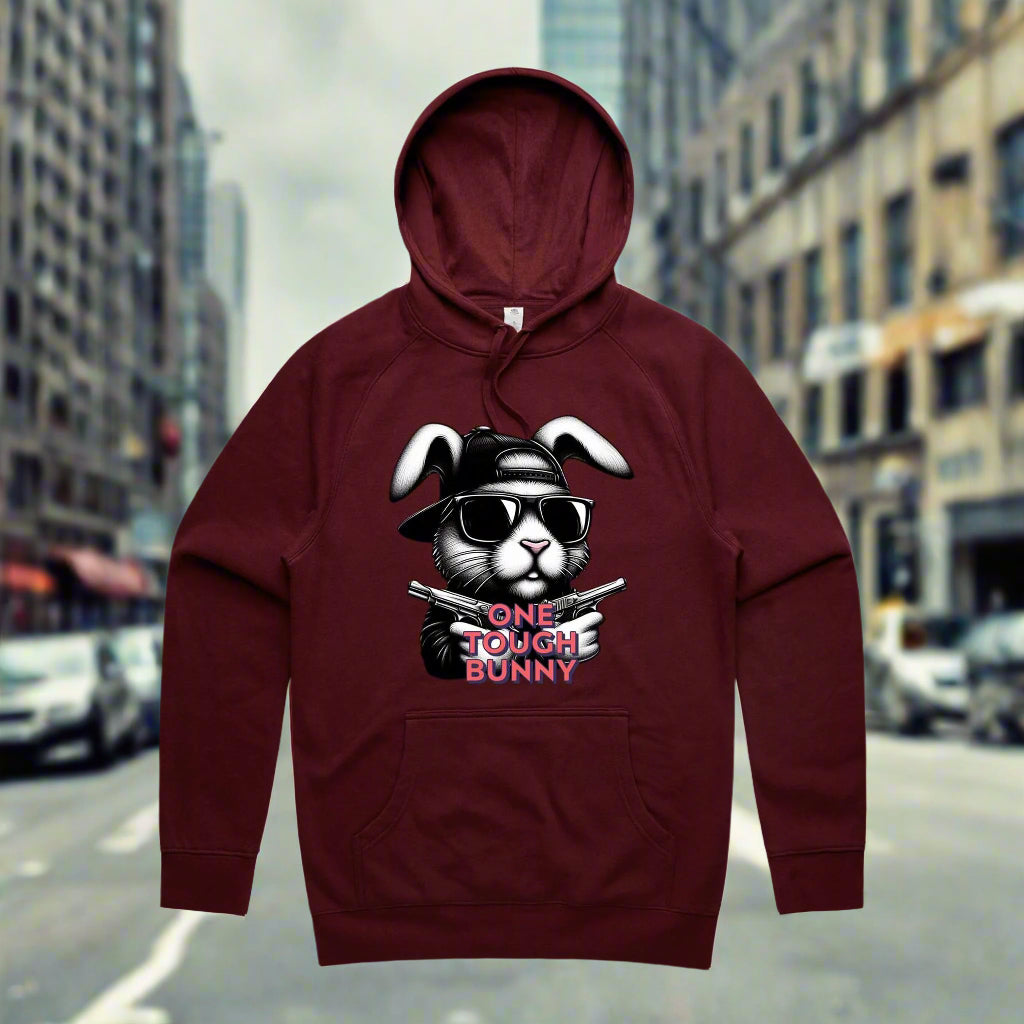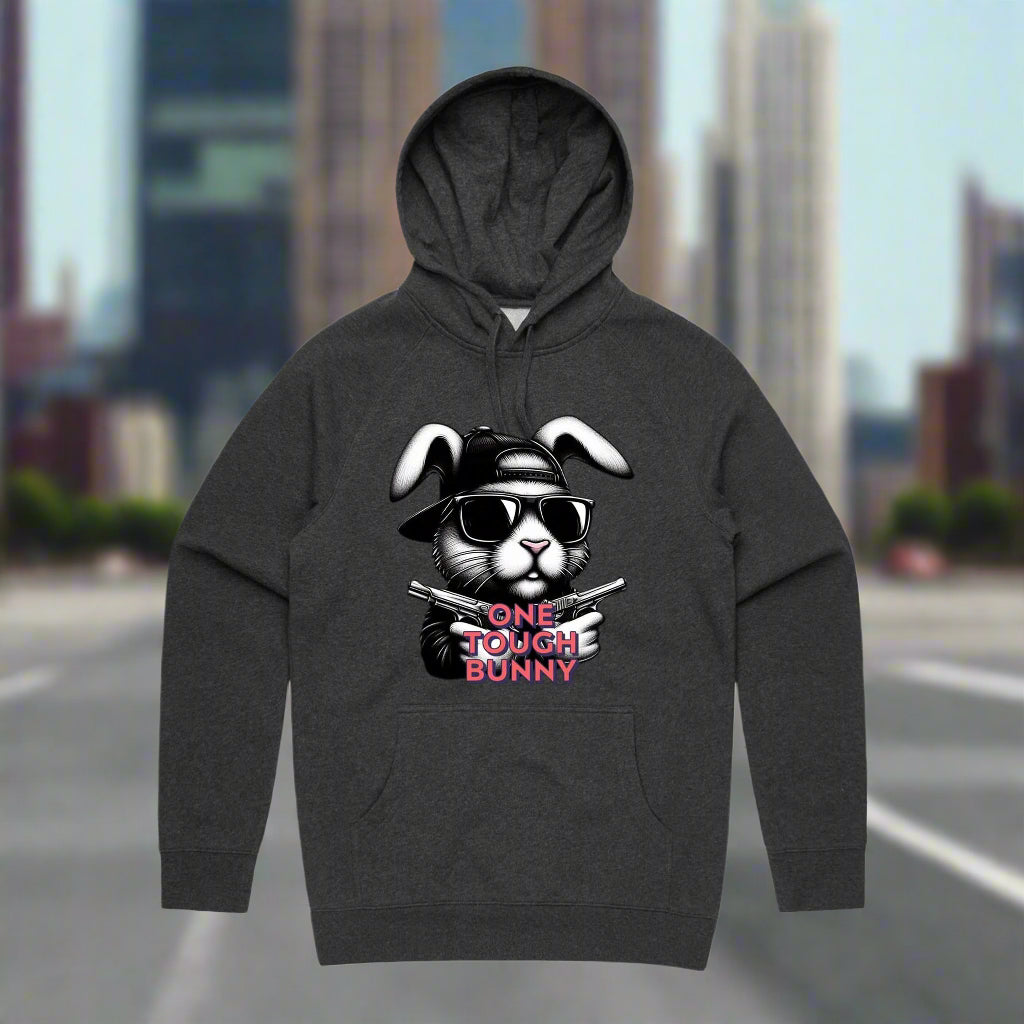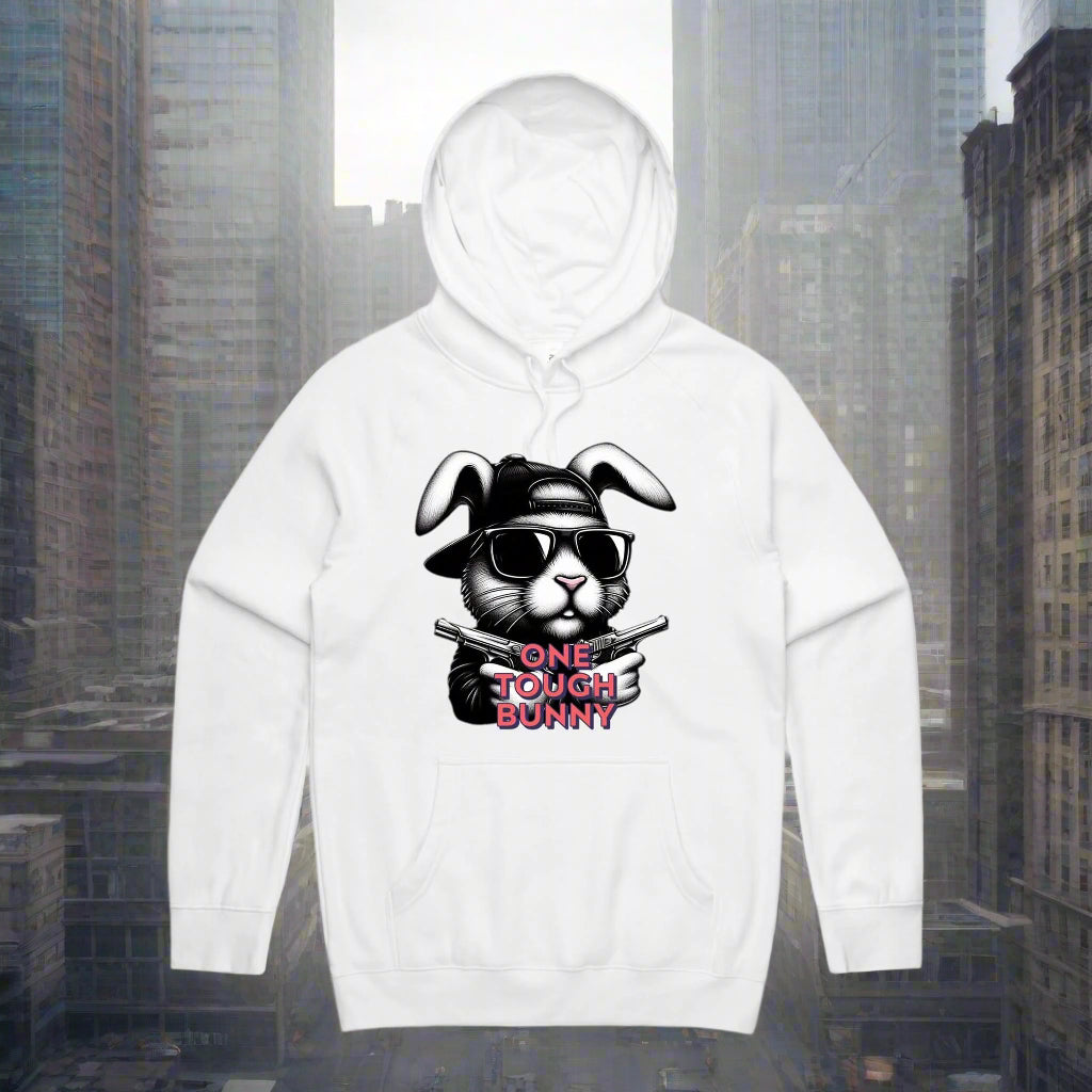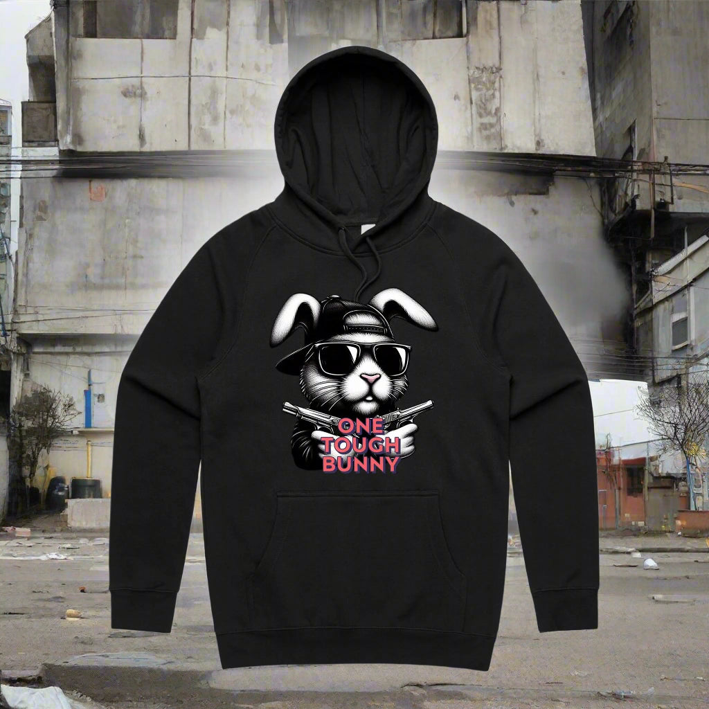 The One Tough Bunny hoodie brings a little attitude not just to the Easter season, but all year round. Featuring a fun, gangster-inspired design, this hoodie will have you feeling like a tough bunny hopping through life. Keep warm and stay cool in this unique hoodie.