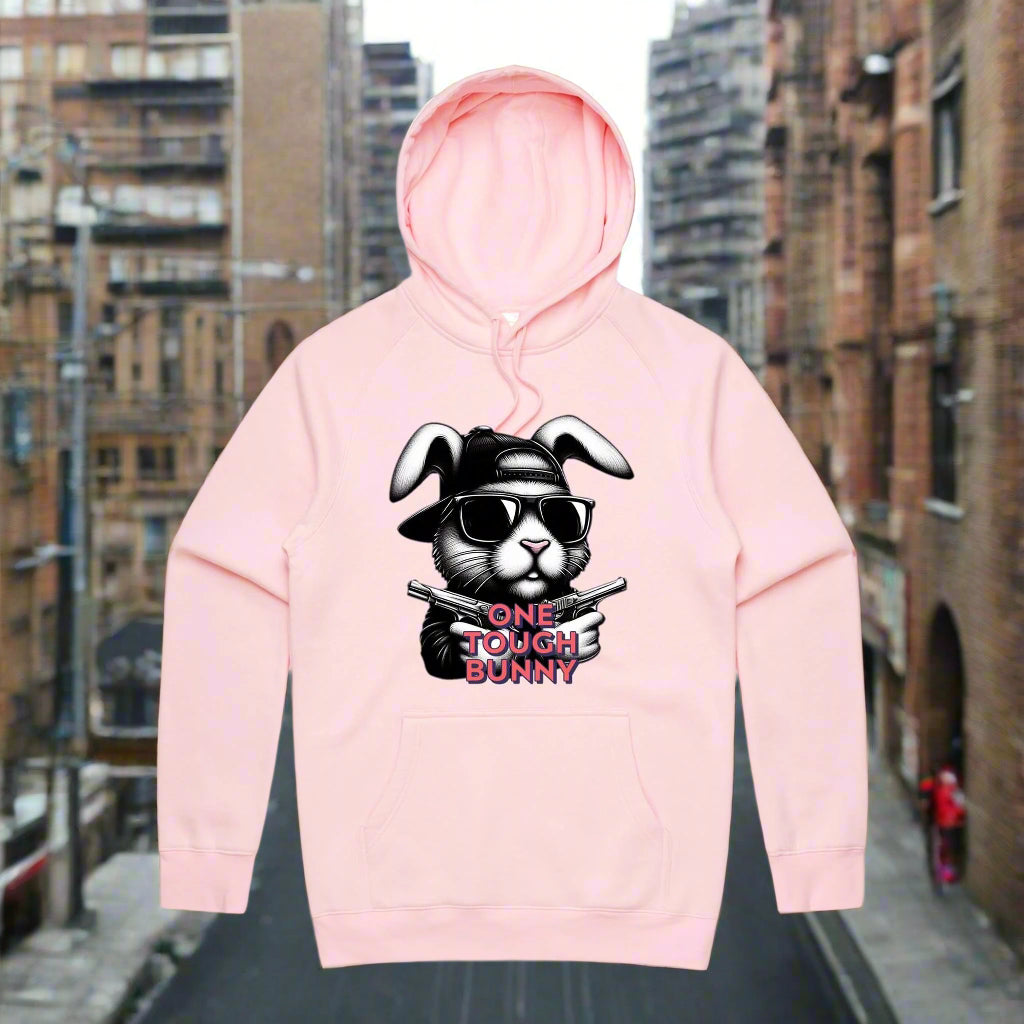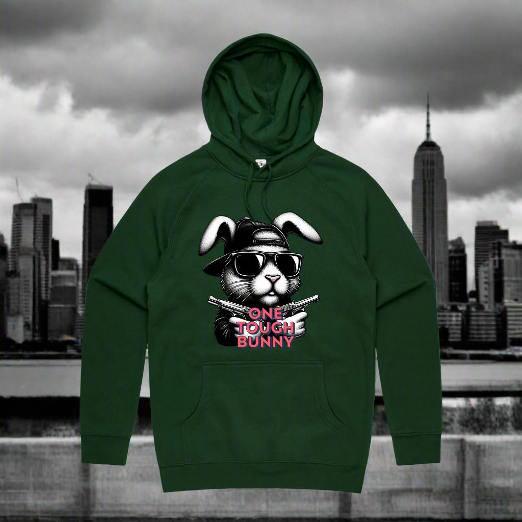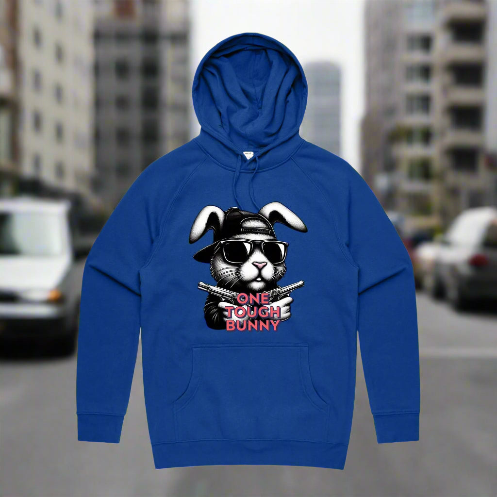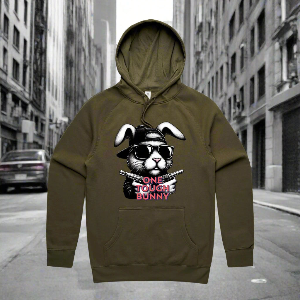 The One Tough Bunny hoodie brings a little attitude not just to the Easter season, but all year round. Featuring a fun, gangster-inspired design, this hoodie will have you feeling like a tough bunny hopping through life. Keep warm and stay cool in this unique hoodie.