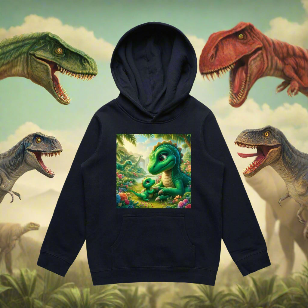 Roar into style with our Mummy & Baby Dino Kids Youth Hoodie! This hoodie features a gorgeous print of a mummy and baby dinosaur, perfect for young dino lovers. Made with soft and breathable fabric, it's both comfortable and stylish. Get ready for some ROAR-some adventures!