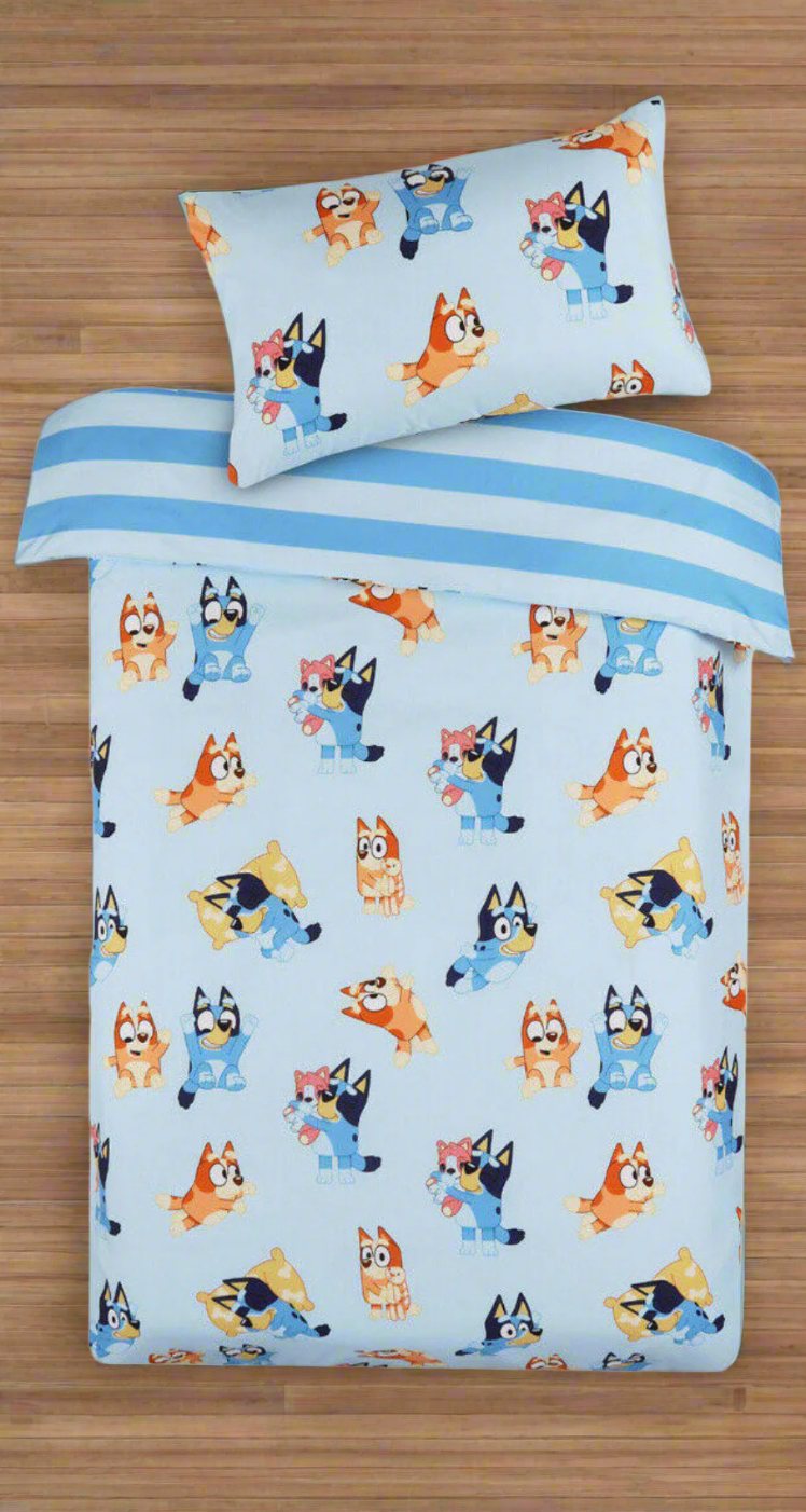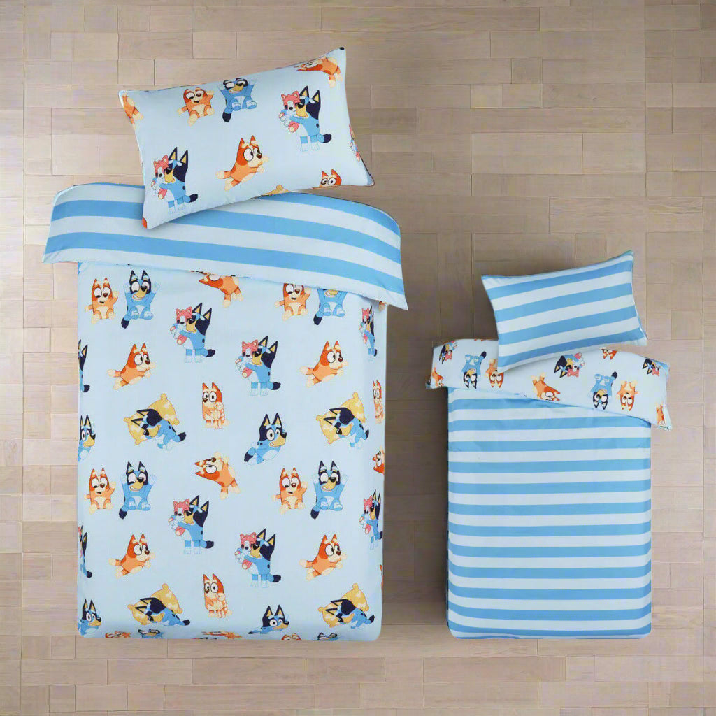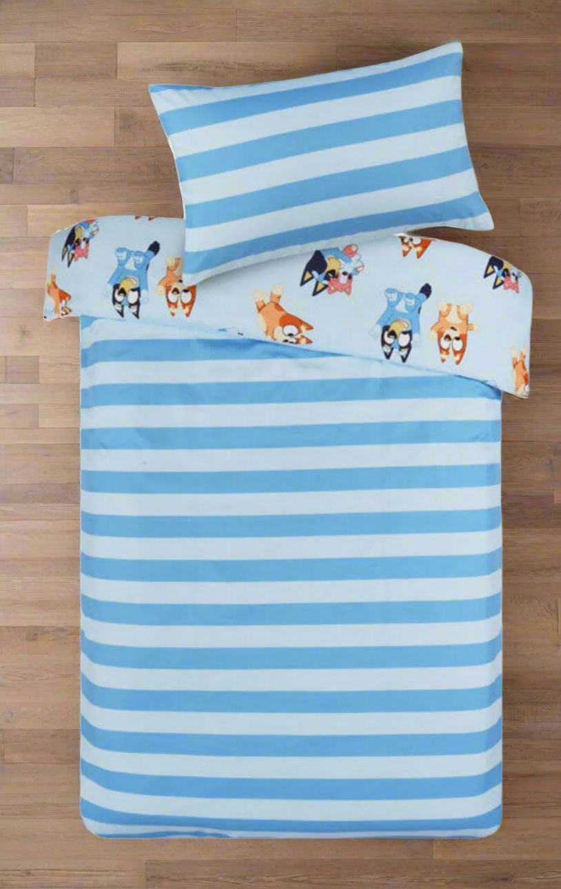 Bluey And Bingo Reversible Striped Licensed Quilt Cover Set Single