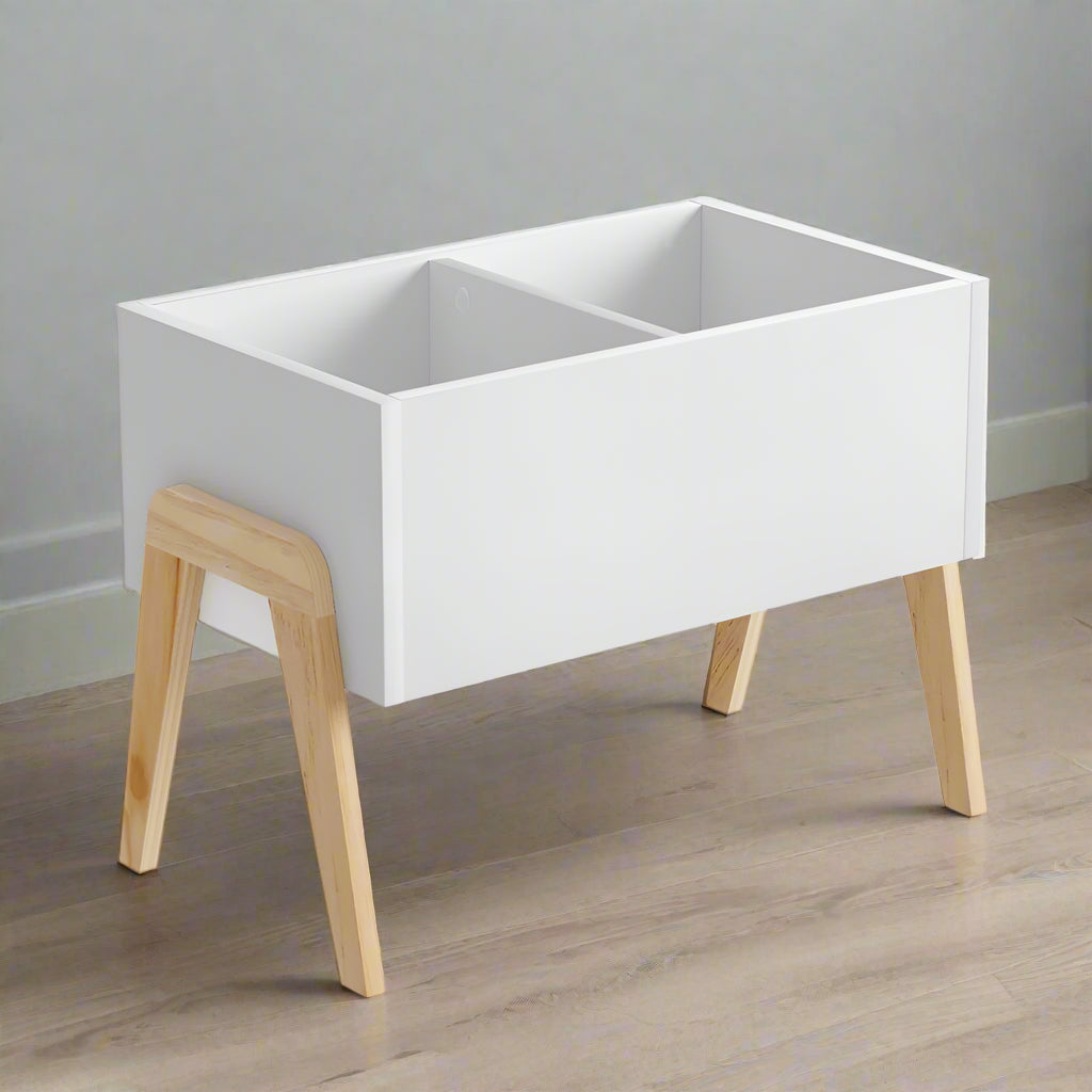 The Keezi Kids Toybox is a sturdy and practical storage solution designed to help keep your child's room neat and organised. Made from high-quality MDF with solid pinewood legs, this toybox offers both durability and stability. The open shelf design makes it easy for kids to store and retrieve their toys, books, or clothes, while the two compartments provide ample space for different items.