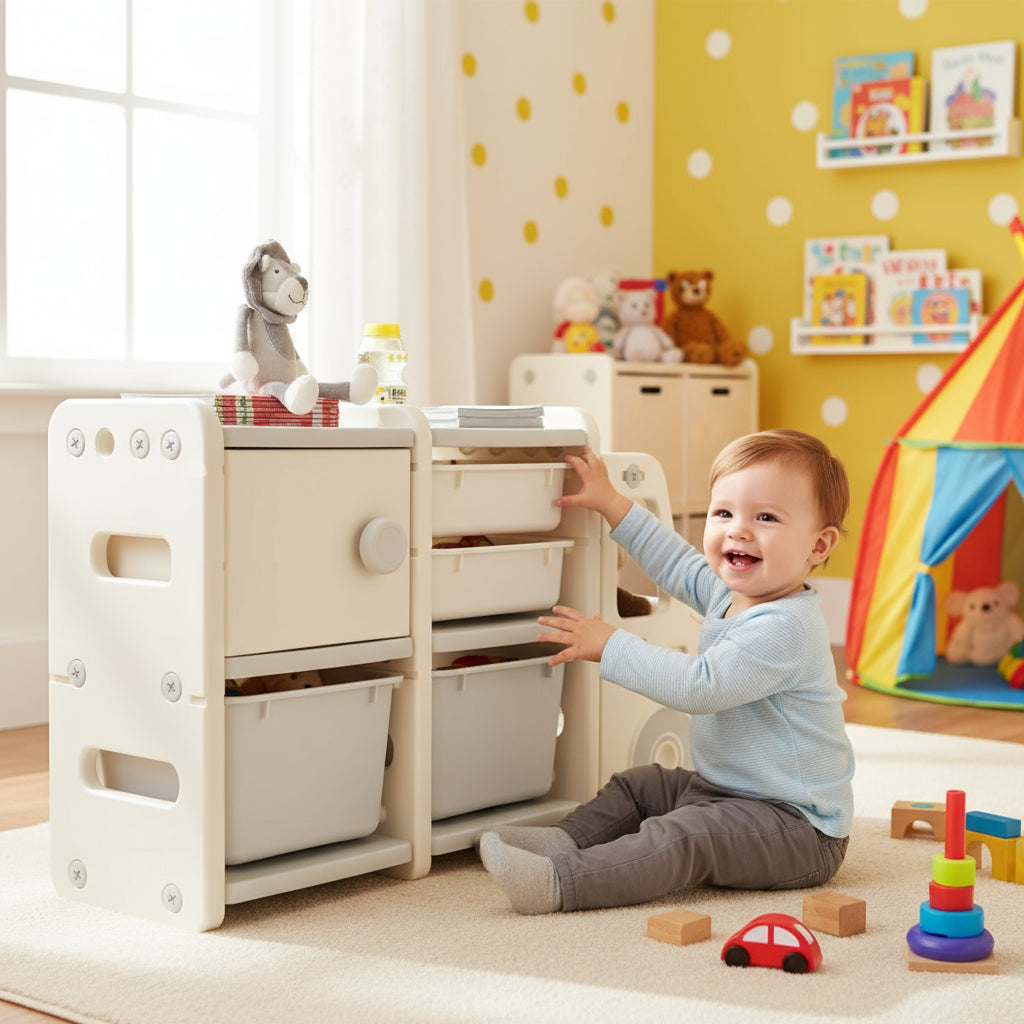 Child-friendly Material: The kids' toy organiser with ASTM and CPSIA certification is made of high-grade HDPE material, which is durable, BPA-free, odourless and friendly to children’s well-being. And the sleek edges and rounded corners minimize the risk of bumping or scratching, while the stable construction avoids wobbling or tipping over.