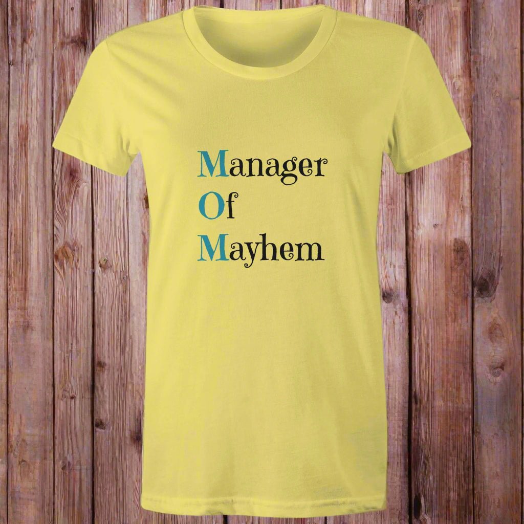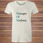 Embrace the chaos with our "Manager Of Mayhem" maple tee! This playful women's shirt celebrates the wild ride of motherhood with style and humour. Super soft fabric keeps you comfortable while wrangling tiny humans, spilled juice, and impossible schedules.