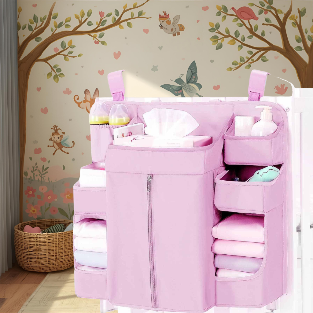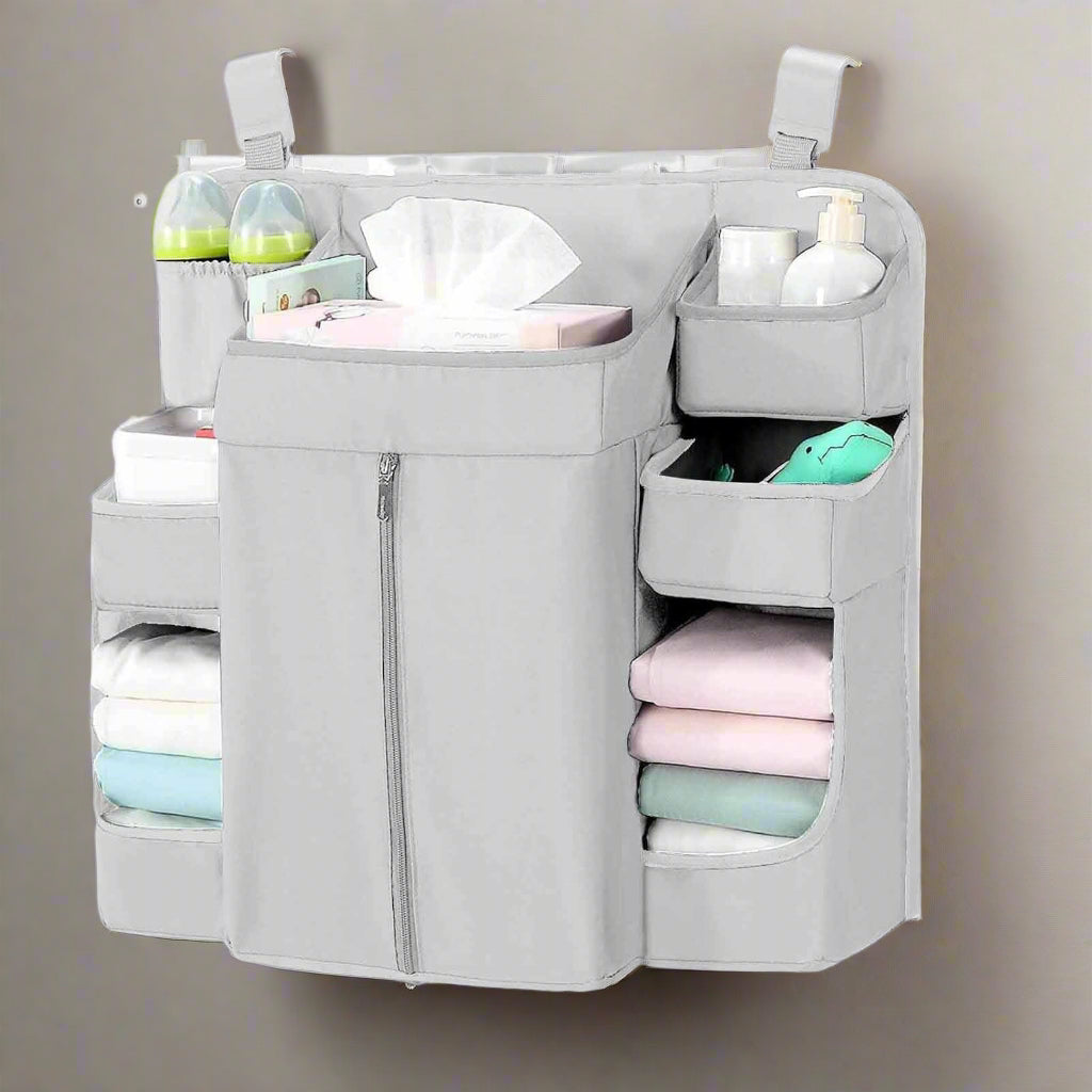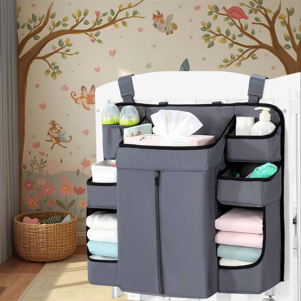 Foldable Baby Cot Storage Hanging Bag - Large Capacity Organiser for Cots and Changing Tables