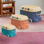 This Car Toy Storage Box fosters children's storage habits with its playful design and practical features. Shaped like a car with mobile wheels and a creative building block-inspired lid, it offers ample storage and durability. With handles on both sides, it's easy to carry. Three sizes for storing different items.