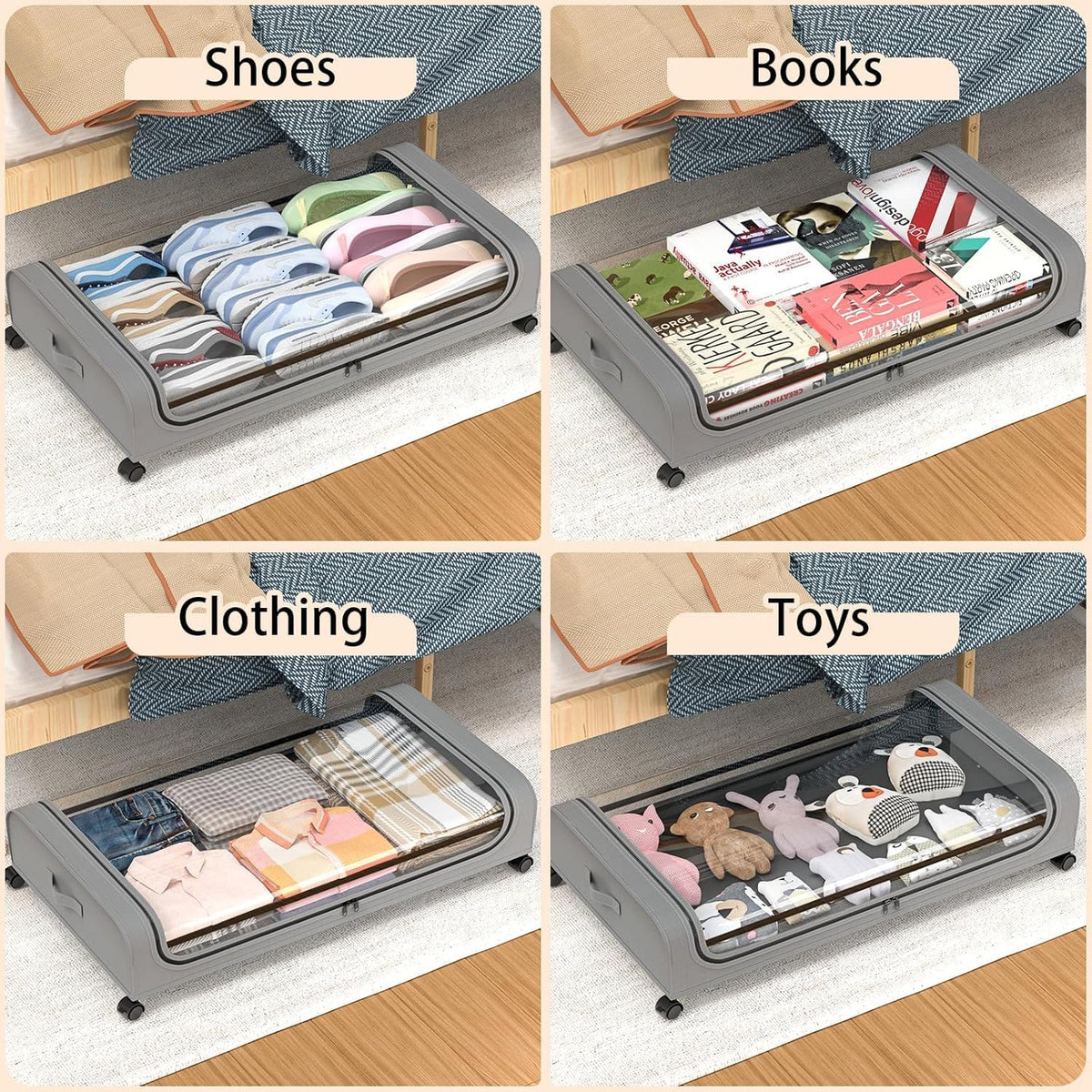 - MULTIFUNCTIONAL & EASY ASSEMBLY: Perfect for organizing under the bed, sofa, or closet, this under bed rolling storage can store a wide variety of items, including seasonal clothing, blankets, toys, and shoes. Ideal for small apartments, dorms, or maximizing space in any home, it's a versatile storage solution that fits anywhere. Moreover, NO tools are required for the simple setup of this under-bed storage container. Great for anyone looking to optimize storage space with minimal effort, especially seniors and those with mobility concerns.