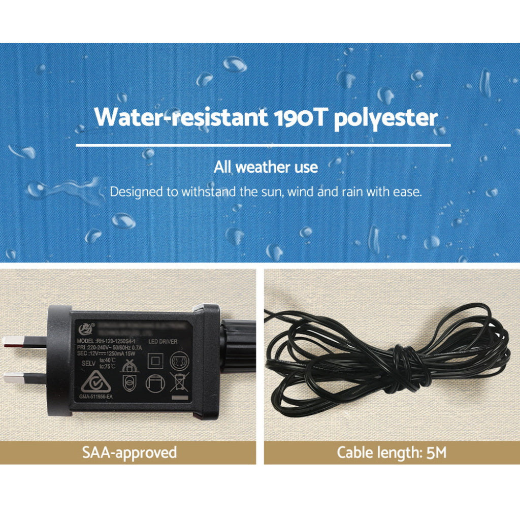 Add festive charm to your home with our Aussie Christmas Surfin' Santa Inflatable. Crafted with water-repellent and UV-resistant materials, it is perfect for indoor and outdoor use. The built-in air blower ensures effortless inflation. For quick storage, simply unzip and deflate. Pegs and ropes are also included for secure ground anchoring, bringing you peace of mind. Create a magical holiday display effortlessly with this delightful inflatable centrepiece!