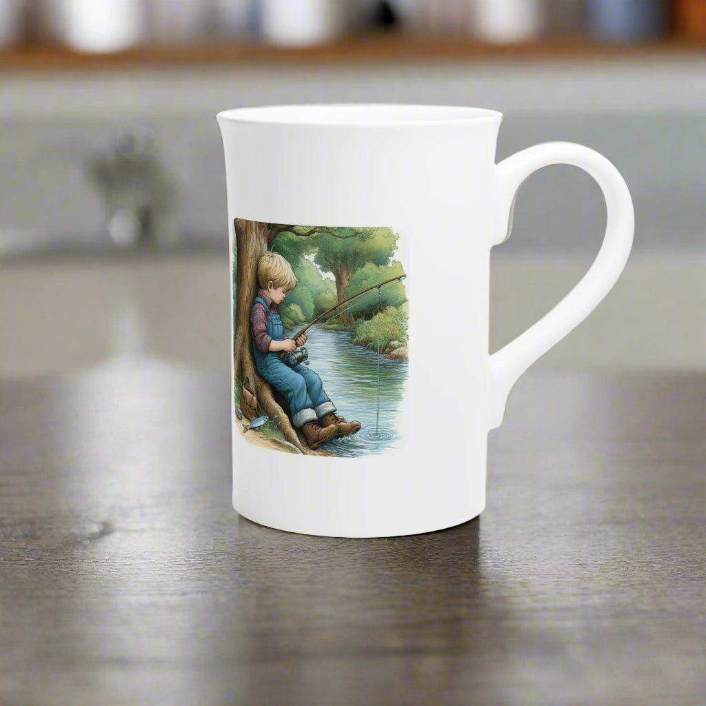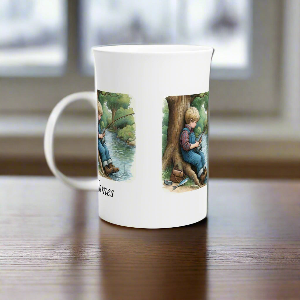 Personalised Fishing Mug for Boys – Custom Name Porcelain 10oz Cup