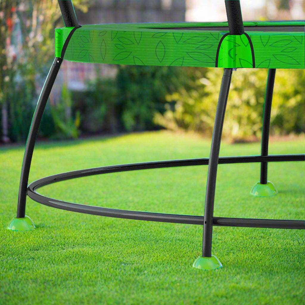 Bounce the day away on the 12ft HyperJump 4 Spring Trampoline. The new series HyperJump 4 offers all the big bounce benefits of a spring trampoline with increased protection from metal components. Little ones can jump, twist and flip carefree on the HyperJump 4 with the support of the reinforced safety netting and foam-covered metal springs to protect small wandering hands. Our curved poles allow kids to safely fall on the net with the smart zipless entry making it easier to enter and exit the trampoline.
